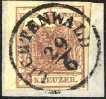 | Zusatzinformationen und Suchstichworte: | 75. Viennafil Live-Auktion 29. November - 2. Dezember 2022 Los 1501 Österreich Abstempelungen Steiermark "Lichtenwald 29.6", RS-f (Müller 35 Punkte), Briefstück mit 6 Kr. rötlichbraun, HP III, Befund Weißenbichler, ANK 4 III HP Ausruf 40,00 EUR |
