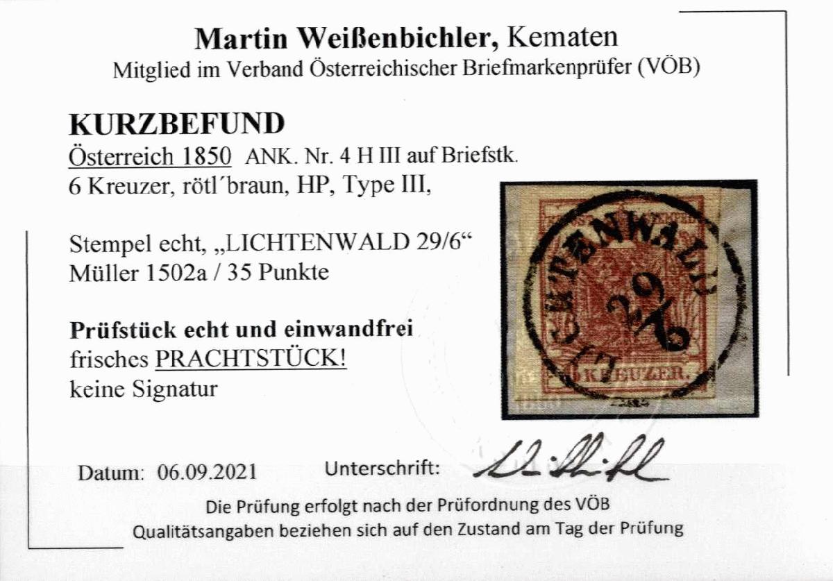 | Prüfer: | Weißenbichler, Martin (VÖB (Verband Österreichischer Briefmarkenprüfer)) |