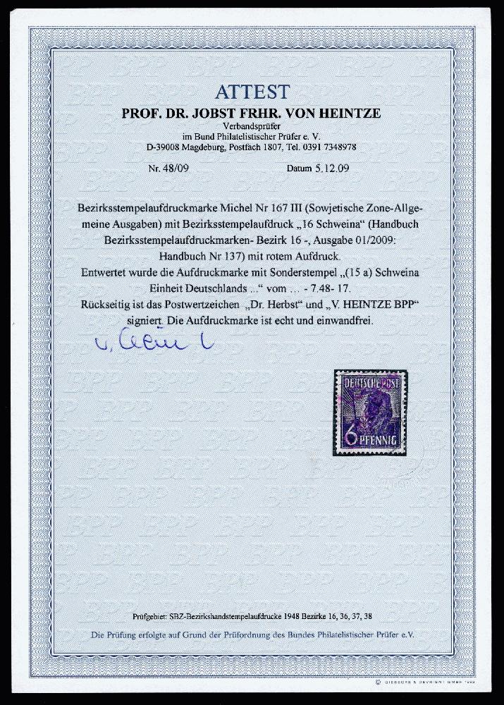 | Prüfgebiet: | Alliierte Besetzung SBZ Bezirkshandstempel Bezirk 16 |