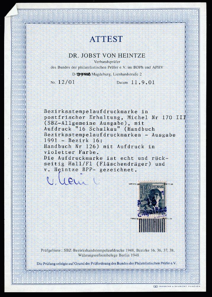 | Prüfer: | von Heintze, Jobst (BPP (Bund Philatelistischer Prüfer)) |