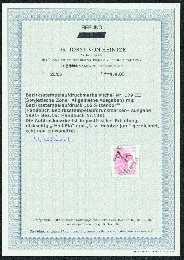 | Prüfer: | von Heintze, Jobst (BPP (Bund Philatelistischer Prüfer)) |