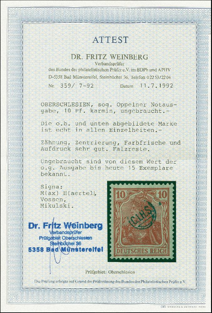 | Prüfgebiet: | Oberschlesien Oppelner Notausgabe |