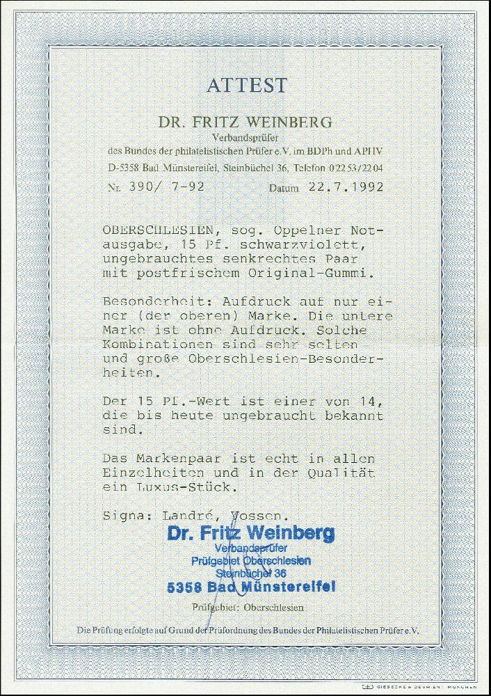 | Prüfgebiet: | Oberschlesien Oppelner Notausgabe |