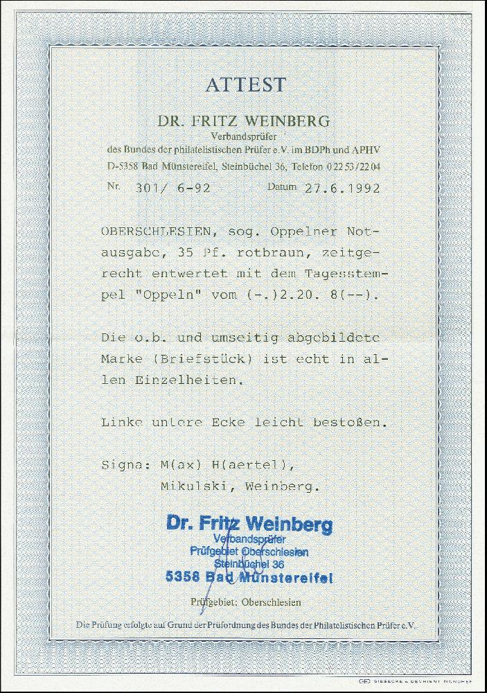 | Prüfgebiet: | Oberschlesien Oppelner Notausgabe |
