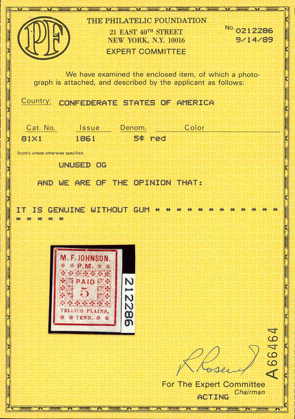 | Prüfer: | The Philatelic Foundation, (Prüferkommission) |