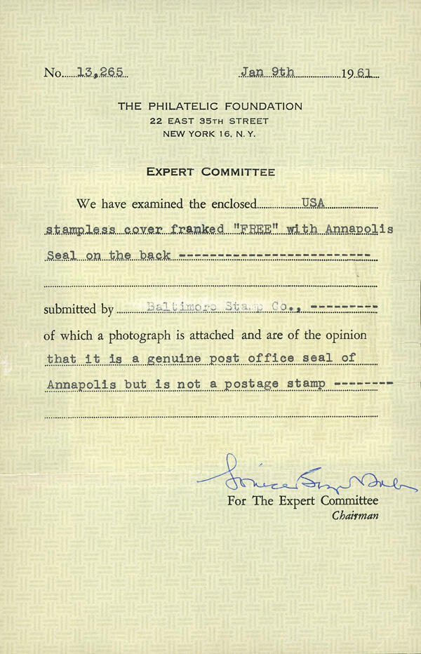 | Prüfer: | The Philatelic Foundation, (Prüferkommission) |