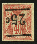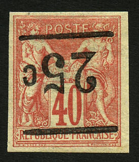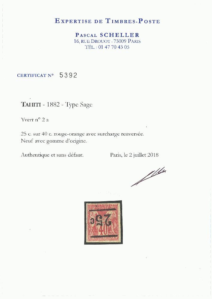| Zusatzinformationen und Suchstichworte: | Lugdunum 123. Auktion 5. Dezember 2022 Los 95 Tahiti TAHITI : 25c s/ 40c Surcharge RENVERSEE (n°2a) neuf *. Tirage 50. RARETE. Cote 7000€. Certificat SCHELLER. Superbe Ausruf 2.800,00 EUR |