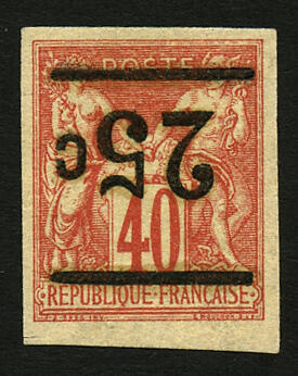 | Zusatzinformationen und Suchstichworte: | Lugdunum 123. Auktion 5. Dezember 2022 Los 96 Tahiti TAHITI : 25c s/ 40c (n°2a) surcharge renversée neuf *. Cote 7000€. Tirage 50. Signé BRUN + CALVES + ROUMET. Certificat SCHELLER (2018). Superbe Ausruf 2.800,00 EUR |