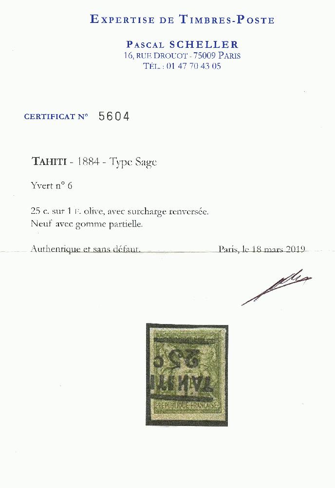| Zusatzinformationen und Suchstichworte: | Lugdunum 123. Auktion 5. Dezember 2022 Los 97 Tahiti TAHITI : 25c s/ 1F Surcharge renversée (n°6) neuf avec gomme partielle. Tirage 850. Cote 1200€. Certificat SCHELLER. Superbe Ausruf 325,00 EUR |
