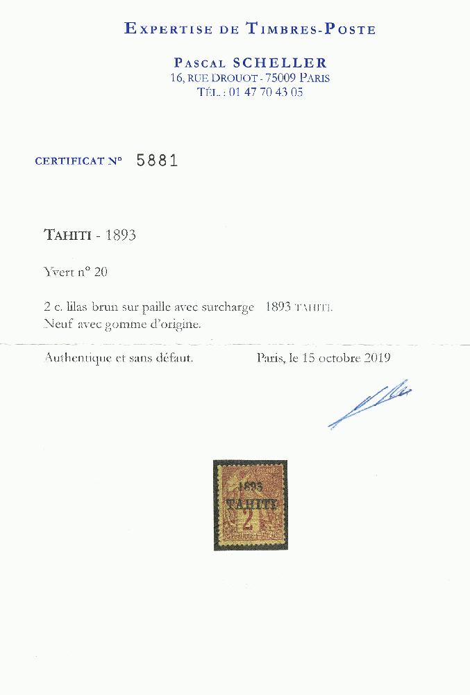 | Zusatzinformationen und Suchstichworte: | Lugdunum 123. Auktion 5. Dezember 2022 Los 101 Tahiti TAHITI : 2c (n°20) neuf *. Cote 6000€. Timbre trés RARE. Tirage 200. Certificat SCHELLER. TTB Ausruf 1.850,00 EUR |