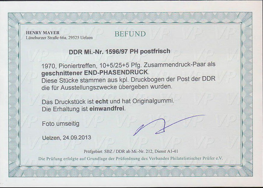 | Zusatzinformationen und Suchstichworte: | Hodam 41. Auktion 12. November 2022 Los 3194 DDR 1596/7 "Pioniere", Phasendruck, Befund Mayer Ausruf 45,00 EUR |