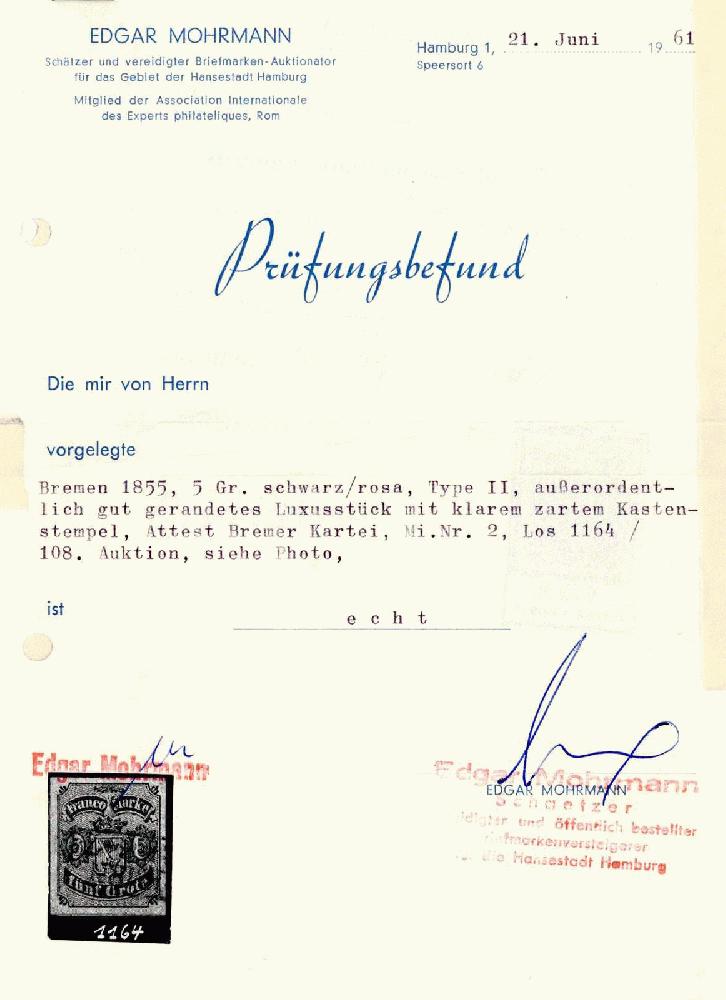| Zusatzinformationen und Suchstichworte: | 230. Karl Pfankuch & Co Auktion 7. - 8. Dezember 2022 Los 173 Altdeutschland Bremen 5 Gr schw. auf rosa, Type II, außerordentlich gut gerandetes Luxusstück mit klarem zaertem Ra2, altes Attest Bremer Kartei und Prüfungsbefund Mohrmann. M€ 400.-+ Ausruf 140,00 EUR |