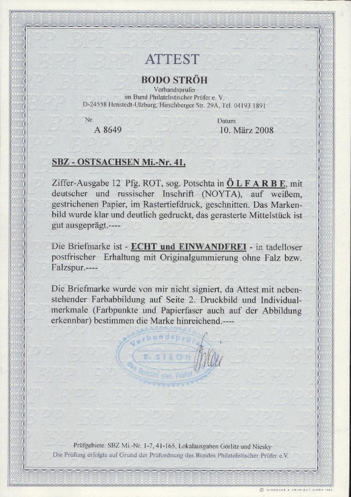 | Prüfer: | Ströh, Bodo (BPP (Bund Philatelistischer Prüfer)) |
