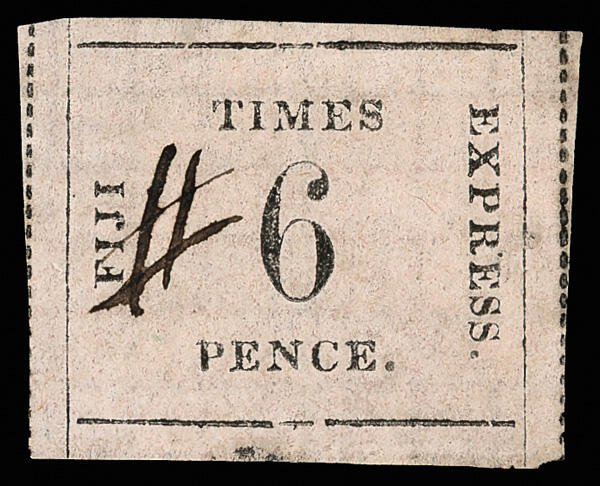 | Zusatzinformationen und Suchstichworte: | Kelleher 777. Auktion 15. - 17. November 2022 Los 6 Fiji 1870, Male Eilboten, 6d schwarz auf rosa, quadrille Papier (Scott 3), ein große Beispiel mit sauber Prägung auf glühend rosa Papier, gedruckt Durchstich sichtbarer an den Seiten und ein handschriftlich (als meiste) "#" Stempel; Einriß unten, ansonsten Pracht, ex Lester ein Meis, mit 2001 R. P. S. V. (sauber) und 2017 B. P. A. (beachtend Einriß) Zertifikaten. SG 3. Scott $3,000. Scott Noten, "Der rosa Farbton des Papiers ist etwas unbeständig und geht bei den meisten erhaltenen Exemplaren teilweise oder ganz verloren." Ausruf 250,00 USD |