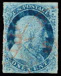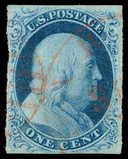 | Zusatzinformationen und Suchstichworte: | Kelleher 777. Auktion 15. - 17. November 2022 Los 262 USA 1851-57 Ausgabe 1851,1¢ blau, Typ IIIa (Scott 8A), ein Entlastung von Platte 1E, rot Orts- und Gitterstempel, schön gleichmäßig gerandet, herrliche Farbe gut akzentuiert mit leichtem rote Stempel, gestochen scharfer Druck, sehr schönes Beispiel; kleine helle Stelle, attraktiv sehr gute Wirkung, ex Lippman, mit 2012 Doporto Attest. Scott $925 Ausruf 180,00 USD |