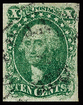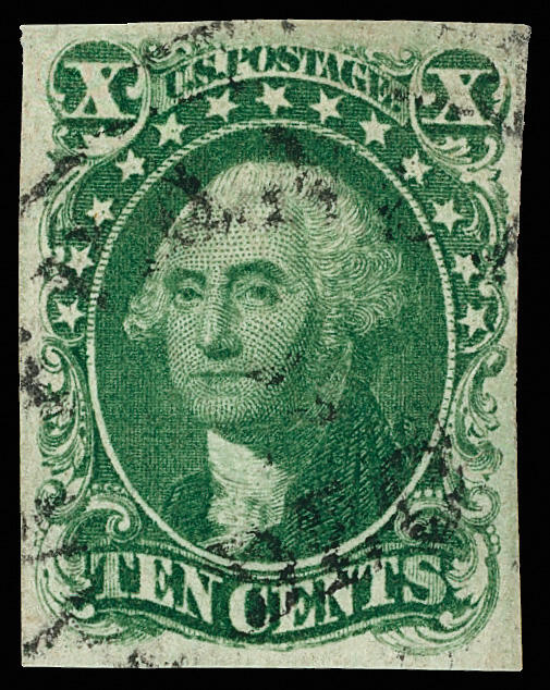 | Zusatzinformationen und Suchstichworte: | Kelleher 777. Auktion 15. - 17. November 2022 Los 283 USA 1851-57 Ausgabe 1855,10¢ grün, Type I (Scott 13), Stück mit vier Rändern (nähere rechts) sauber gedruckt mit leuchtender Farbe auf frischem Papier; hell Ortsstempel gerade Kreuze Washingtons Stirn, feinst bis Pracht +, mit 1996 P. S. E. Attest. Scott $750 Ausruf 250,00 USD |