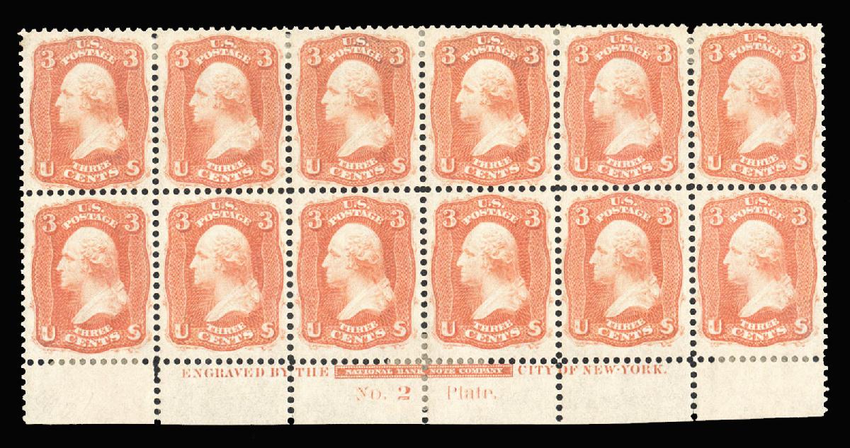 | Zusatzinformationen und Suchstichworte: | Cherrystone - Rare Stamps and Covers of the World 15. - 16. November 2022 Los 34 USA 1861-1866 Ausgabe 1861 3c orange red, First Design, bottom imprint and Plate No.2 block of twelve, h.r., brilliant and vivid orange red color which is distinctly different than brown rose, well centered, few perf. separations sensibly reinforced, v.f. and rare imprint and plate no. block of the 3c First Design in orange red trial color. A rarity, possibly the only recorded Plate Block of twelve (catalogued as plate block of eight (any shade) and four singles), ex-Hall, with 1992 PFC (formerly 56) (Catalog value $21,900) Ausruf 7.000,00 USD |