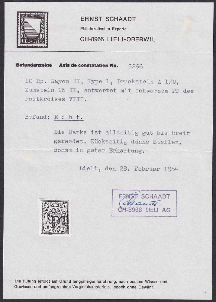 | Zusatzinformationen und Suchstichworte: | Luzernerraute Webshop Los 0000105206 Rayon II, gelb, ohne Kreuzeinfassung (STEIN A 1) T.1 A1-U, mit sehr sauberem P.P. (von Zürich) breitrandige/ farbfrische Marke, rückseitig wenig hell sonst tadellos mit Attest Schaadt (1984) SBK: 650.- (oben schmaler GR zu T.33 A1-O) Festpreis 240,00 CHF |