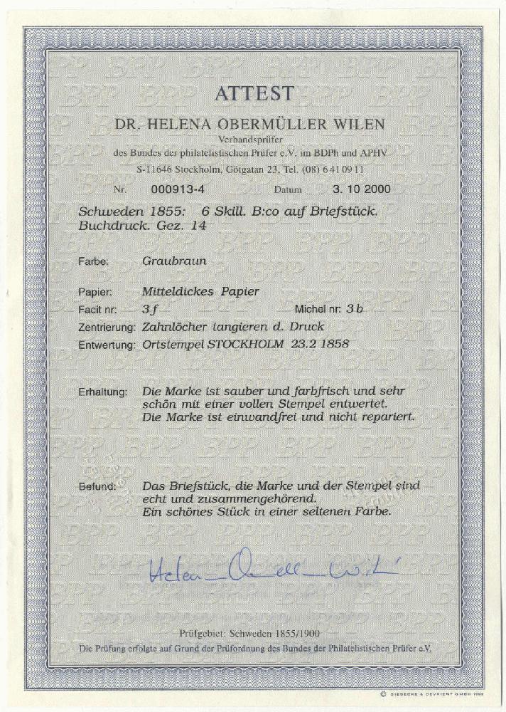 | Prüfer: | Obermüller Wilén, Helena (BPP (Bund Philatelistischer Prüfer)) |