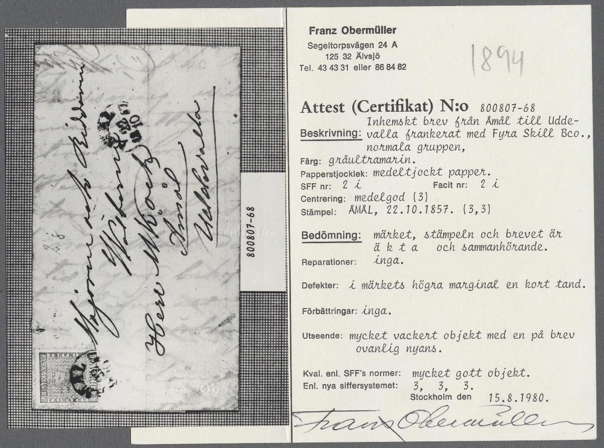 | Zusatzinformationen und Suchstichworte: | Auction Galleries Hamburg 26. Auktion 18. - 19. November 2022 Los 657 D Schweden 1866, 4sk bco. grey-ultramarine on cover from AMAL 22 10 1857, VF, Franz Obermüller photo cert. ÷ 1855, 4 Sk. bco. grauultramarin auf Prachtbrief von AMAL 22.10.1857, FA Franz Obermüller Ausruf 200,00 EUR |
