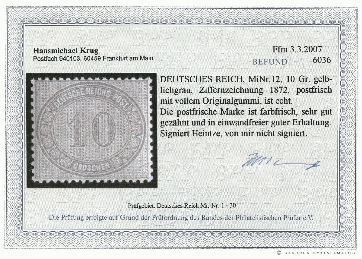| Prüfer: | Krug, Hansmichael (BPP (Bund Philatelistischer Prüfer)) |