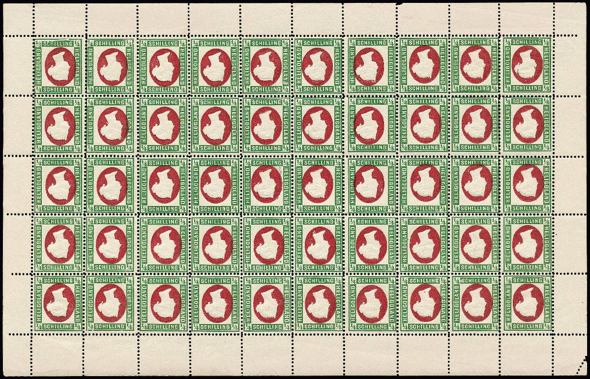 | Zusatzinformationen und Suchstichworte: | Rauhut & Kruschel - 214. Auktion 19. Novmeber 2022 Los 1708 Altdeutschland Helgoland 1/4 Sch., der Fehldruck als Hamburger Neudruck mit kopfstehendem Mittelstück im kompletten postfrischen Bogen (auf Feld 25 kl. Papierverletzung). Als Besonderheit zudem deutliche Plattenfehler auf den Feldern 1 und 12. Es sind nur wenige vollständige Bögen der Kopfsteher bekannt. Atteste Estelmann, Schulz Ausruf 450,00 EUR |