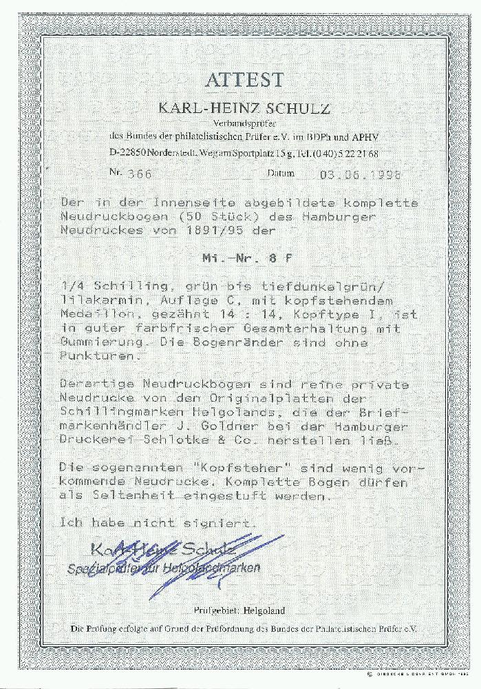 | Prüfer: | Schulz, Karl-Heinz (BPP (Bund Philatelistischer Prüfer)) |