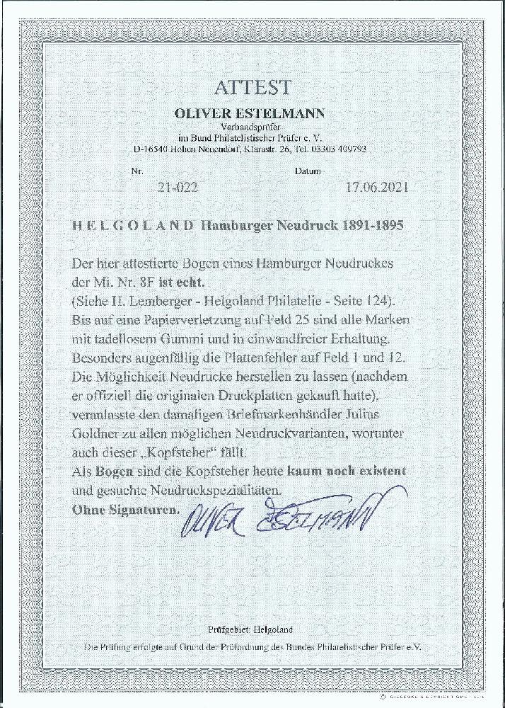 | Prüfer: | Estelmann, Oliver (BPP (Bund Philatelistischer Prüfer)) |