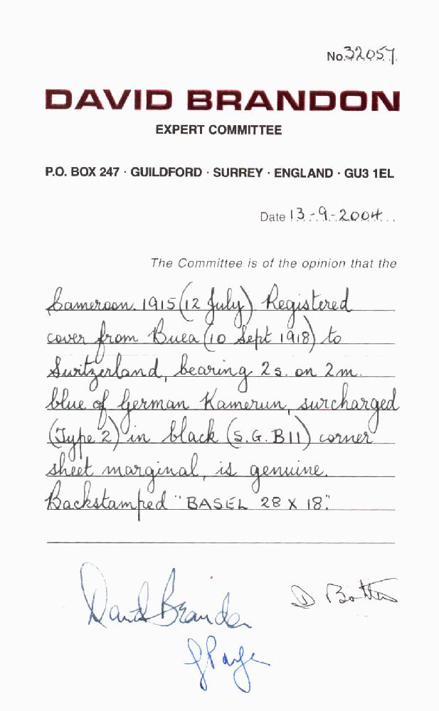 | Prüfgebiet: | Deutsche Kolonien Kamerun Britische Besetzung |