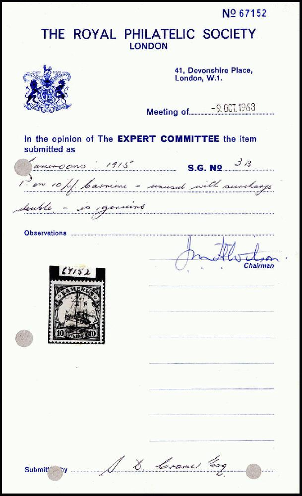 | Prüfgebiet: | Deutsche Kolonien Kamerun Britische Besetzung |