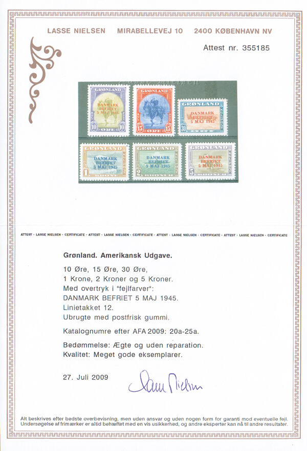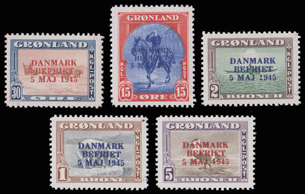 | Zusatzinformationen und Suchstichworte: | Kelleher 774. Auktion 13. - 16. September 2022 Los 2467 Grönland 1945,10öre-5kr Befreiung, versetzte Überdruck Farben komplett (Scott 22a-27a), Originalgummi postfrisch, Pracht. Nur zwei, 500 des 10ø wurden hergestellt. Mit ein 2009 L. Neilsen Attest für den Satz. Facit 22v 2-27v 2; SKr 19,500 ($2,030). Scott $1,375. Zuschlag 475,00 USD |