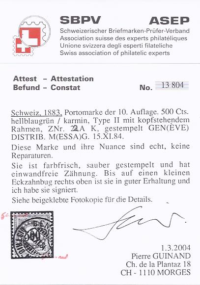 | Prüfer: | Guinand, Pierre (SBPV / ASEP (Schweizerischer Briefmarken-Prüfer-Verband)) |