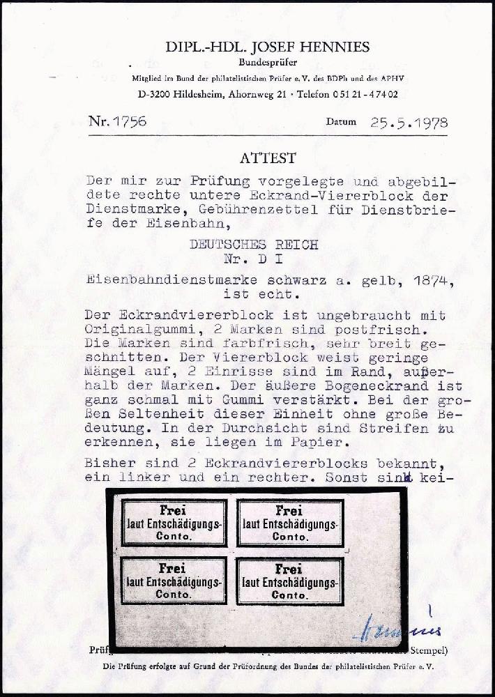 | Prüfgebiet: | Deutsches Reich Dienstmarken 1874 - 1945 |