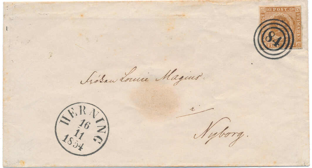 | Zusatzinformationen und Suchstichworte: | Postiljonen 237. Int. Briefmarken Auktion 29. September - 01. Oktober 2022 Los 571 Dänemark 4 Rigsbank Skilling A wonderful envelope with 4 RBS Thiele III yellow brown plate III No. 29 with two perfect postmarks "84" and "HERNING 16.11 1854" sent to Nyborg. Cert. Jørgensen. SUPERB. Zuschlag 200,00 EUR |
