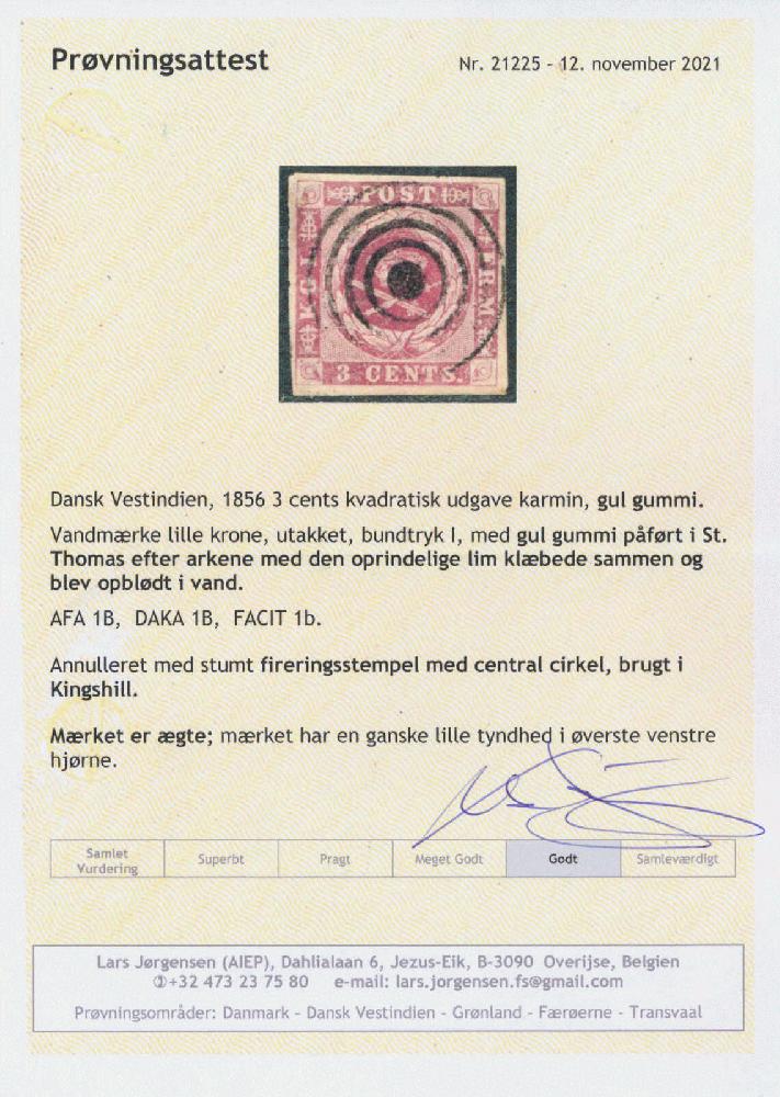 | Zusatzinformationen und Suchstichworte: | Postiljonen 237. Int. Briefmarken Auktion 29. September - 01. Oktober 2022 Los 766 Dänisch Westindien The Danish West Indies Stamp Issues Wonderful strike of the scarce mute canc. used in Kingshill on 3 cent with yellow gum. Small thin spot of minor importance. Cert. Jørgensen. SCARCE. Zuschlag 700,00 EUR |