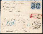 | Zusatzinformationen und Suchstichworte: | 39. Darabanth Auktion 5. November 2022 Los 3192 Russland 1908 Ajánlott levélen 2 x Mi 41 fordított alapnyomattal, Észtországba / 2 x Mi 41 with inverted burelage on registered cover to Estonia, RR! Certificate: Hovest (the stamps: Mi 2 x EUR 1.000,-, on cover: ca. EUR 10.000,-) Ausruf 260.000,00 HUF |