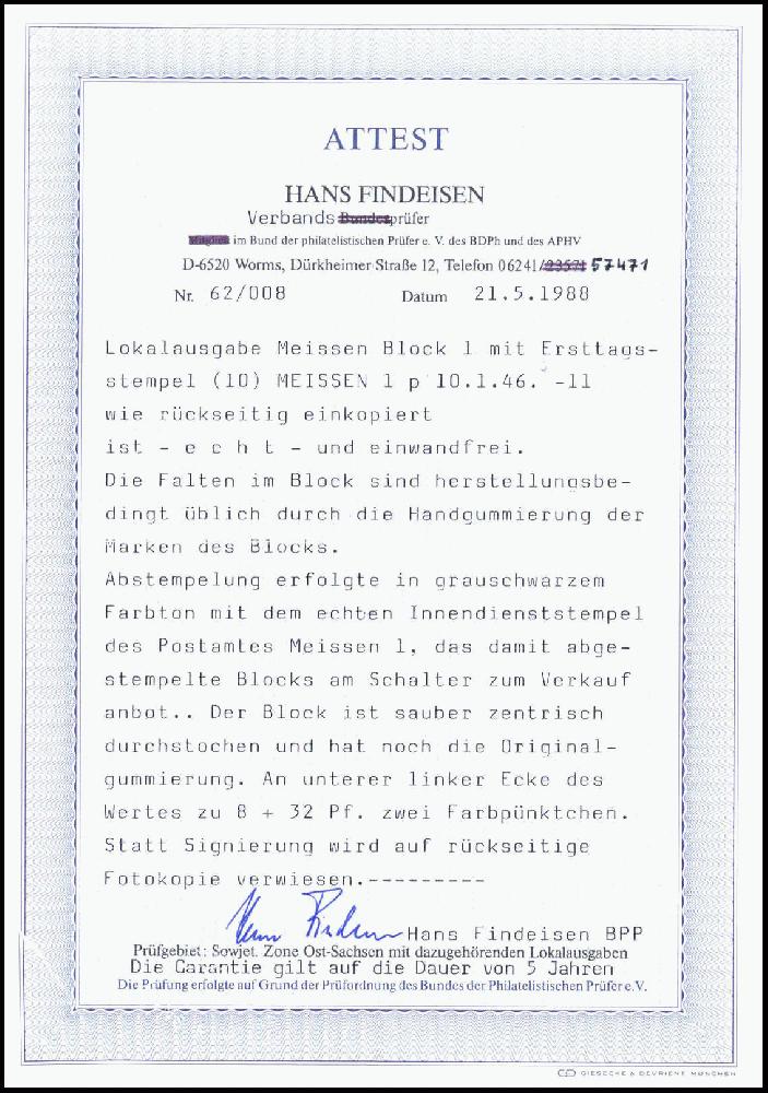 | Prüfgebiet: | Deutsche Lokalausgaben 1945 Meißen Block |
