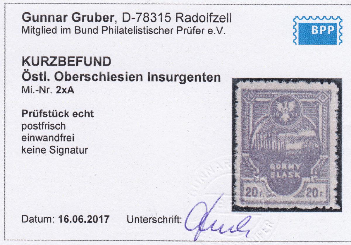 | Prüfgebiet: | Oberschlesien Insurgentenausgabe |