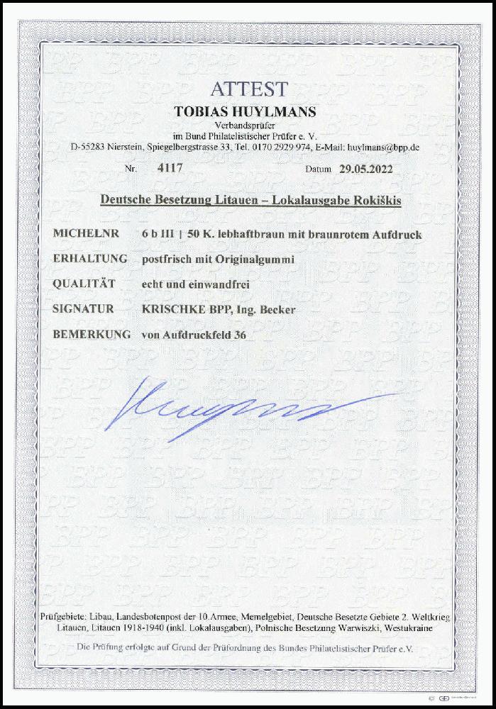 | Prüfgebiet: | Deutsche Besetzung WK 2 Litauen Rokiskis |