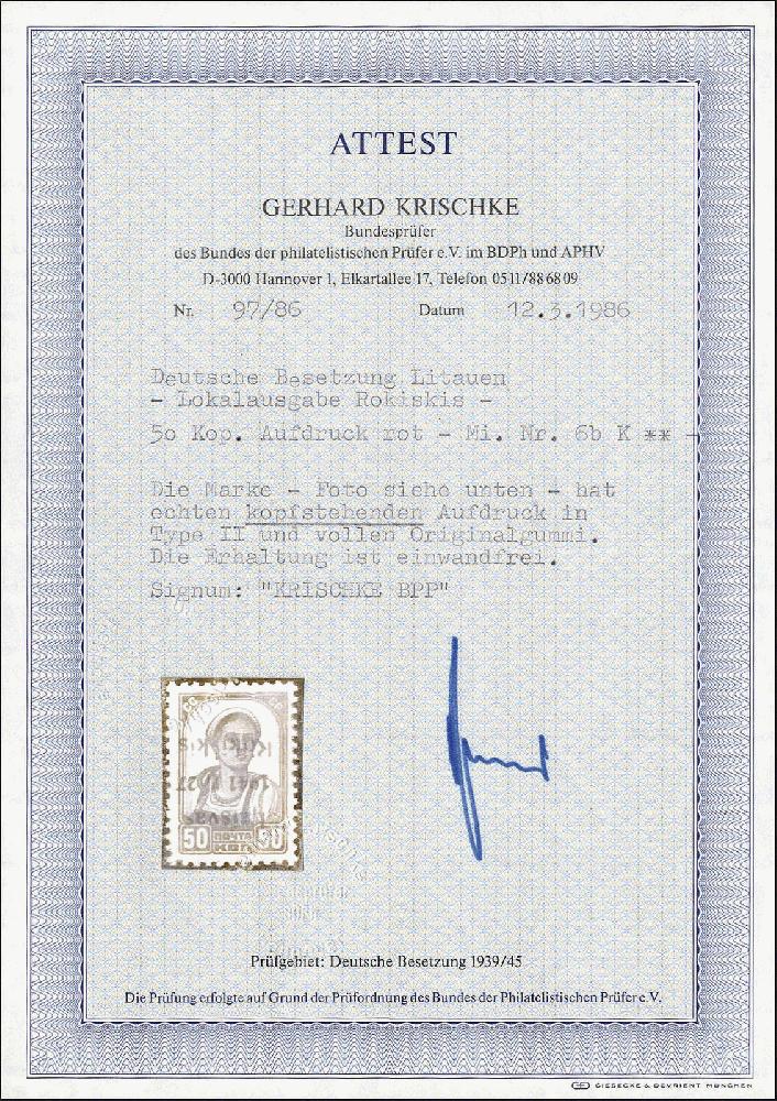 | Prüfgebiet: | Deutsche Besetzung WK 2 Litauen Rokiskis |