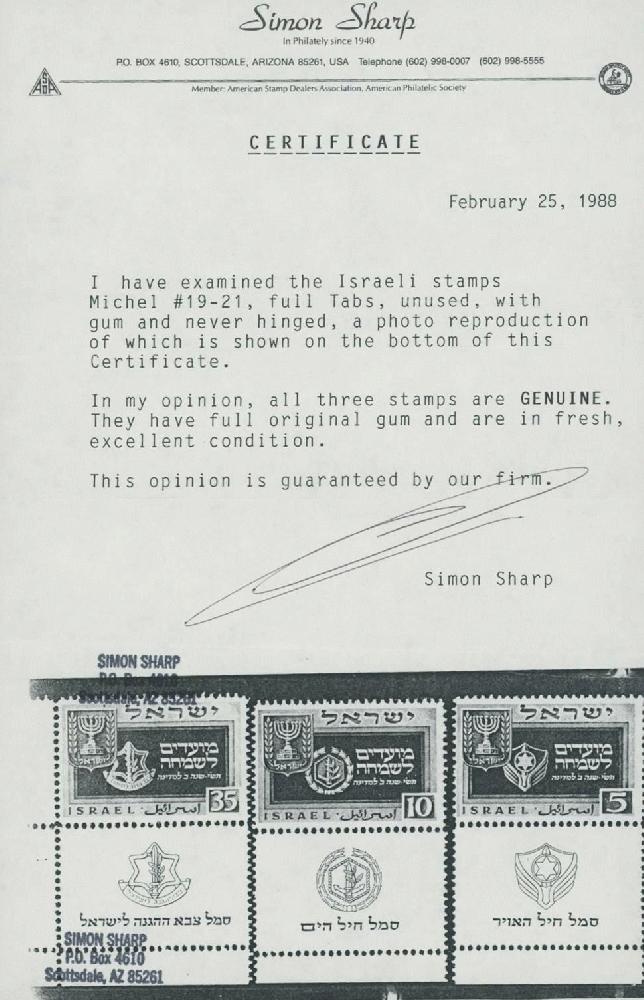 | Zusatzinformationen und Suchstichworte: | Ulrich Felzmann 34. e@uction 5. - 9. September 2022 Los 12189 Israel 1949, Jewish New Year, complete set of three values with full tabs, mnh, vf, certificate Simon Sharp (ASDA) (Sc. 28-30, Bale 18-20) Zuschlag 170,00 EUR |
