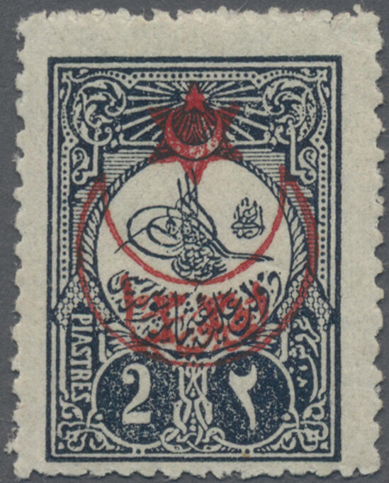| Zusatzinformationen und Suchstichworte: | Christoph Gärtner 54. Auktion 18. - 19. Oktober 2022 Los 4362 D Türkei 1915,2 Pia schiefer Drucksachenmarke mit ovp "matbua" und "sechs Strahlenstern und Halbmond" in rot jede, Linienzähnung 13¼ : 12, postfrisch mit fast komplett Originalgummi, winziger Eckbug, ansonsten F/Prachterhaltung. Sehr selten! Attest P. E. Engler Zuschlag 200,00 EUR |