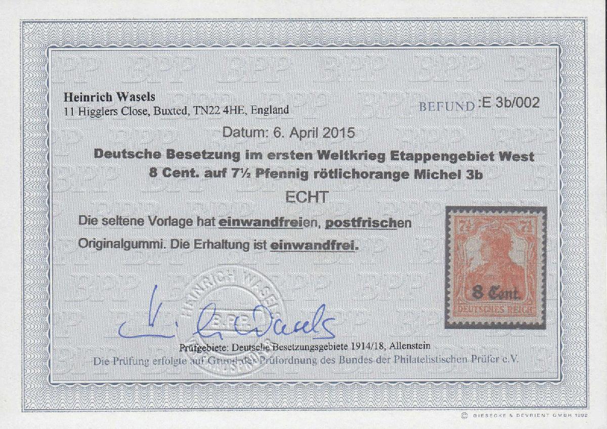 | Prüfer: | Wasels, Heinrich (BPP (Bund Philatelistischer Prüfer)) |