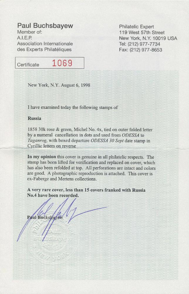 | Prüfer: | Buchsbayew, Paul (AIEP (Association internationale des experts en philatélie)) |