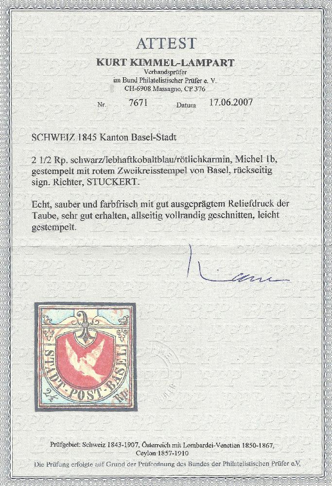 | Zusatzinformationen und Suchstichworte: | Honegger Philatelie AG - Jahresliste 2022 gültig bis 31.12.22 Los 83 Schweiz Kanton Basel Ausnahmestück: allseitig weissrandige Basler Taube (an der Grenze zu lebhaftblau!) in sehr guter Erhaltung! Gemäss Katalog verdienen weissrandige Basler Tauben einen Aufpreis von 50%! FA Kimmel Festpreis 24.000,00 CHF |