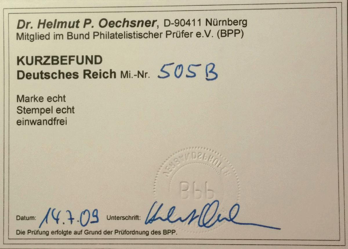 | Prüfer: | Oechsner, Helmut (BPP (Bund Philatelistischer Prüfer)) |
