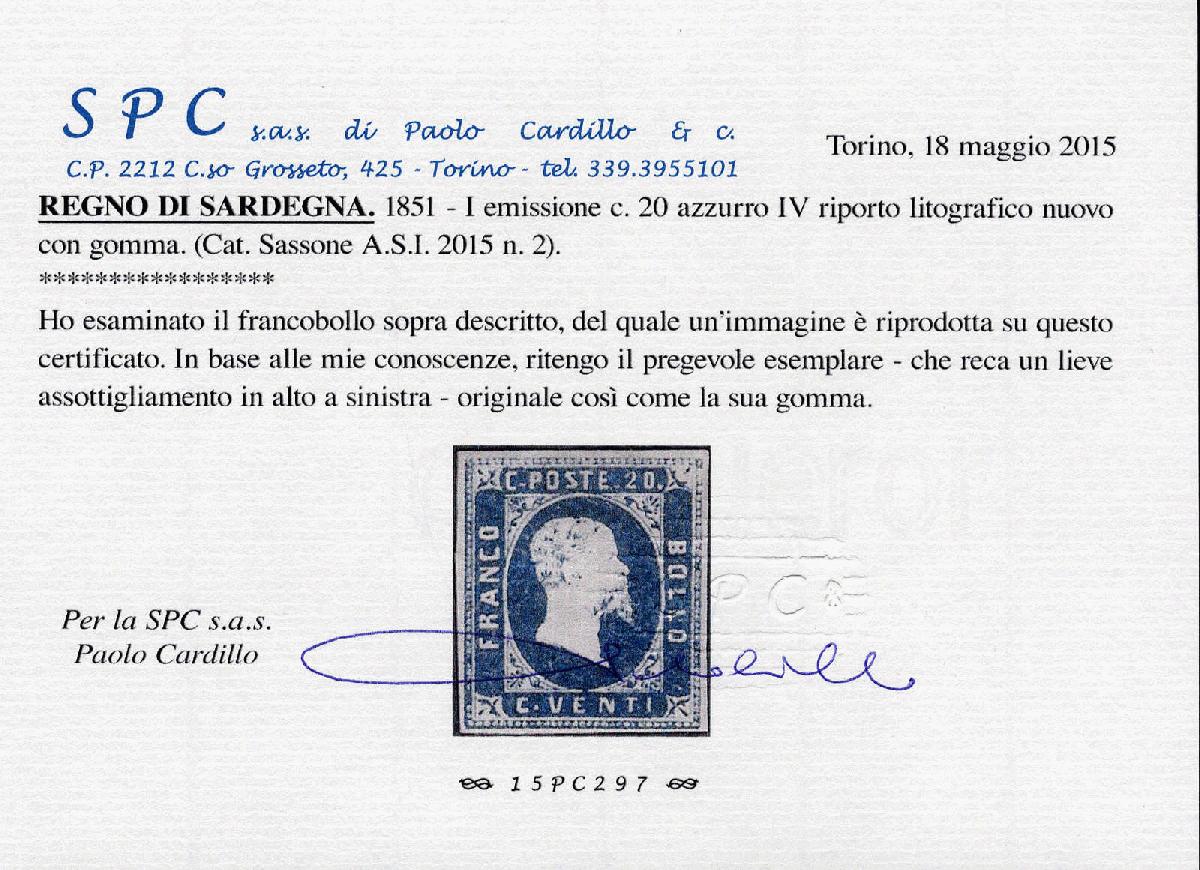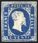 | Zusatzinformationen und Suchstichworte: | 74. Viennafil Fernauktion 19. September 2022 Los 18226 Italien Staaten Sardinien 1851, 20 Cent. azzurro, IV° riporto, nuovo con gomma, lieve assottigliamento in alto a sinistra, cert. Cardillo (S. 2 / 20000,-) Ausruf 400,00 EUR |