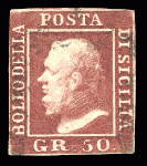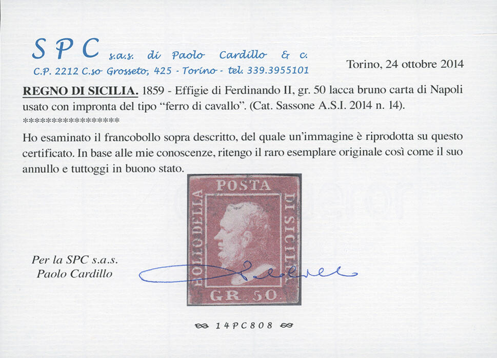 | Zusatzinformationen und Suchstichworte: | Ferrario Aste - 6. Internetauktion 13. November 2022 Los 722 Italien Staaten Sizilien 1859 - 50 cent. lacca bruno (14), usato, buono stato. Raro, occasione. Em.Diena, cert. Cardillo. Cat. € 12000 Ausruf 250,00 EUR |