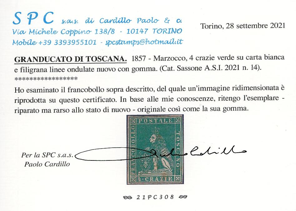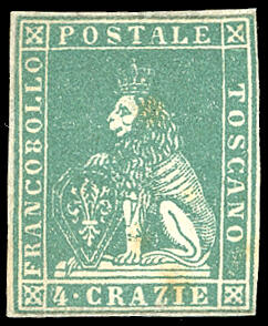 | Zusatzinformationen und Suchstichworte: | Ferrario Aste - 6. Internetauktion 13. November 2022 Los 774 Italien Staaten Toscana 1857 - 4 crazie verde (14), gomma originale, riparato. Ottimo aspetto, occasione. Cert. Cardillo. Cat. € 20000 Zuschlag 400,00 EUR |