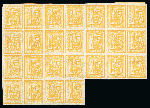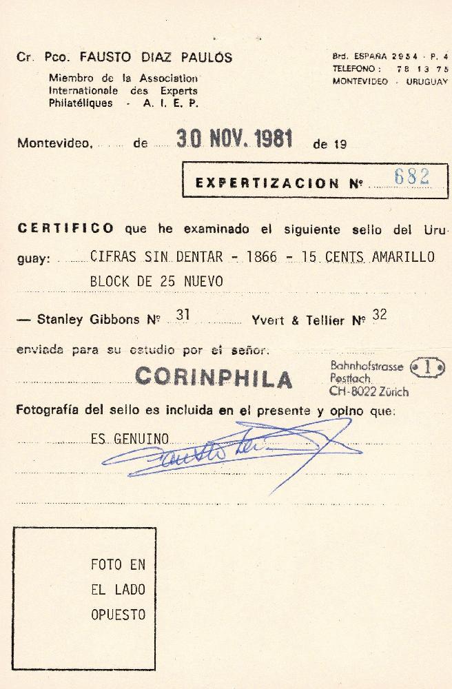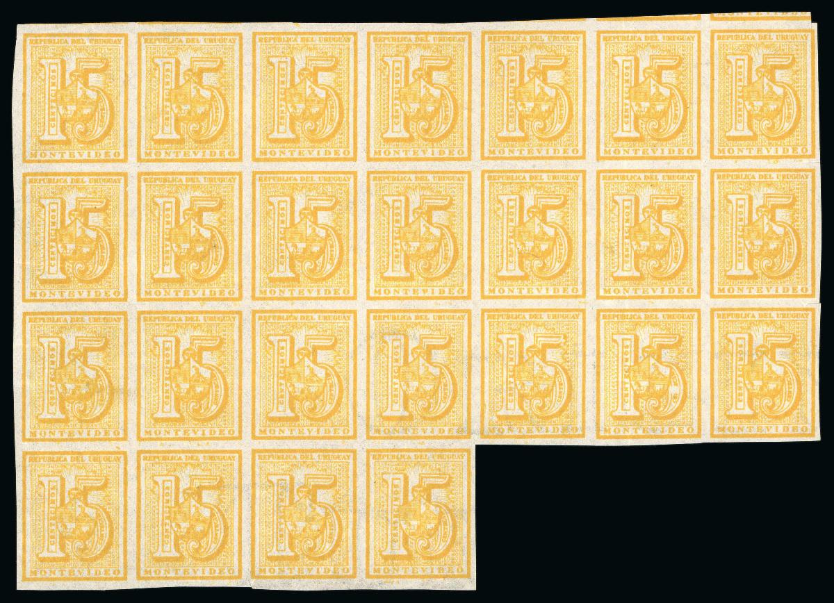 | Zusatzinformationen und Suchstichworte: | David Feldman S.A. - Alle Welt 5. - 9. Dezember 2022 Los 60930 Uruguay 1866,15c orangegelb, Londoner Druck, ein unregelmässig ungebrauchter Block von 25 mit ursprünglichem Gummi, Typen 16 zu 20-16-17/21 zu 25-21-22/26 zu 30-26-27/31 zu 34, (ausgehend von die 15c gezähnt Bogen, die angenommen Position layout im Bogen in dieser Einheit wollte Anfang mit Position 61 und Zieleinlauf mit Position 124), mit "Origi ... /Tur ... " Wasserzeichen des Papiers Macher "original/Türkei Mühle/1865", einige sehr leichte Büge; die drittgrößte ungebraucht Einheit verzeichnet; Attest Díaz Paulos (1981) ; ex Hoffmann Ausruf 300,00 EUR |